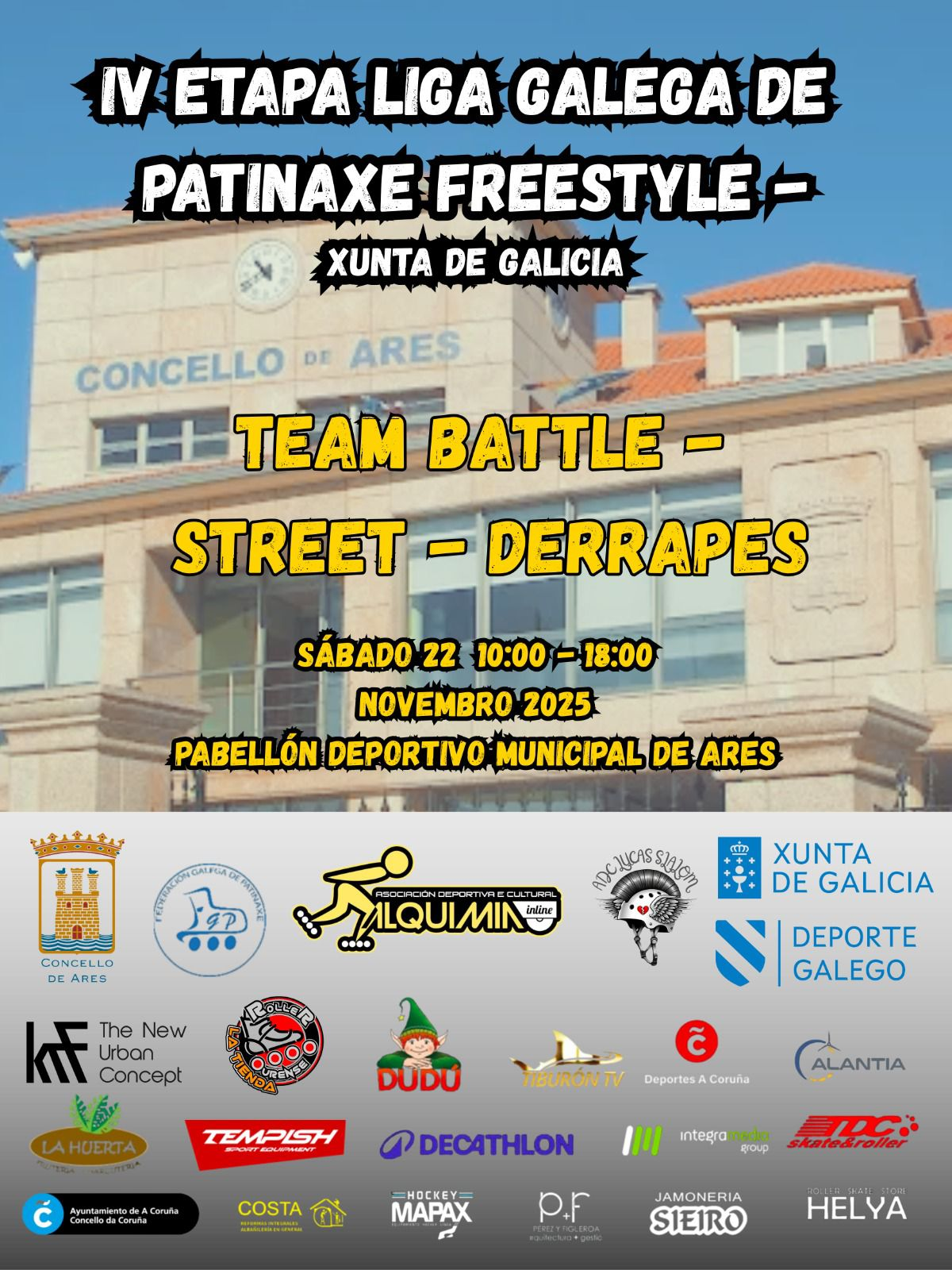 El próximo sábado, 22 de noviembre, de 10:00 a 18:00 horas, el Pabellón Municipal de Ares será el escenario de la IV y última etapa de la Liga Gallega de Patinaje Freestyle, una cita indispensable para los amantes de este deporte en Galicia.