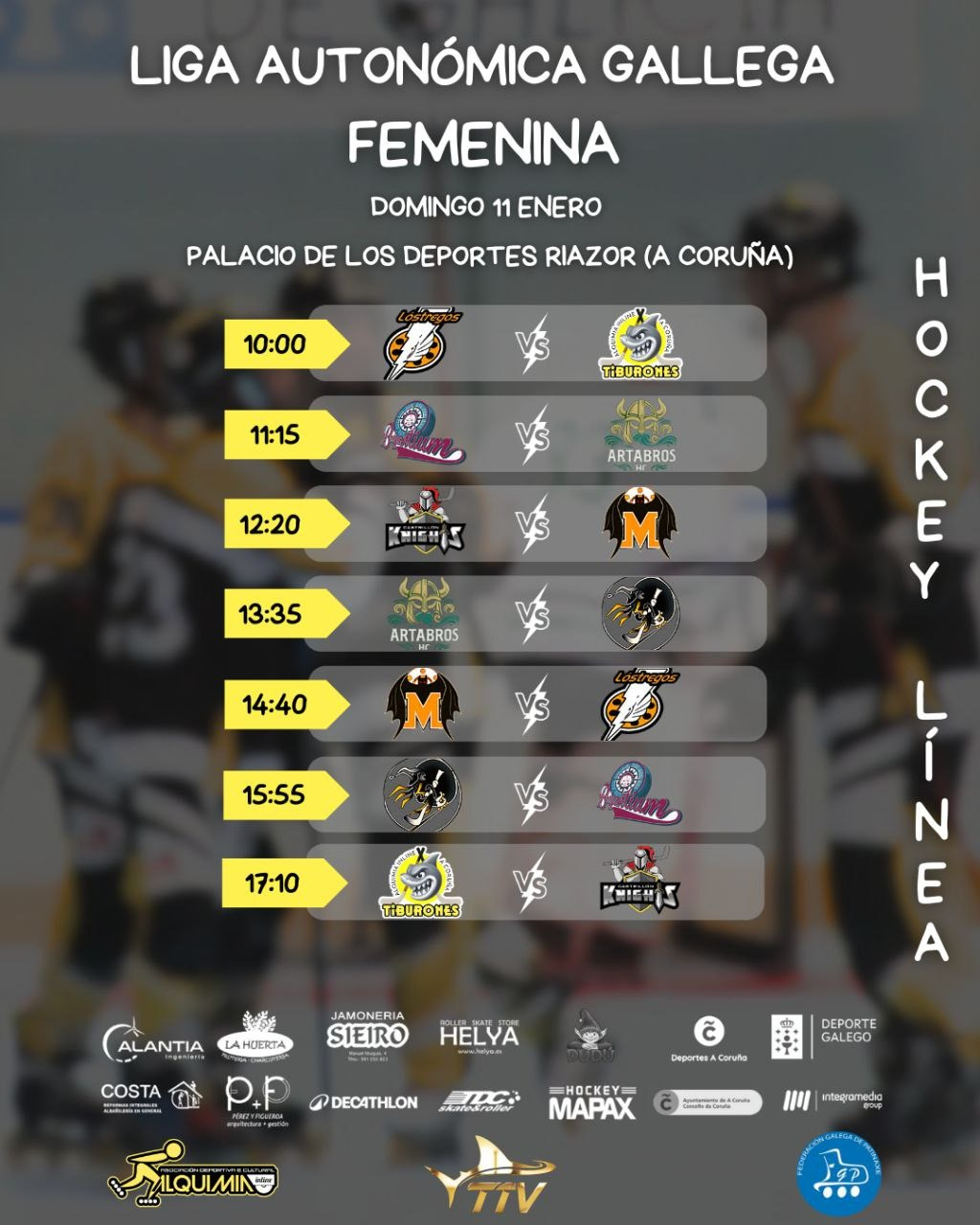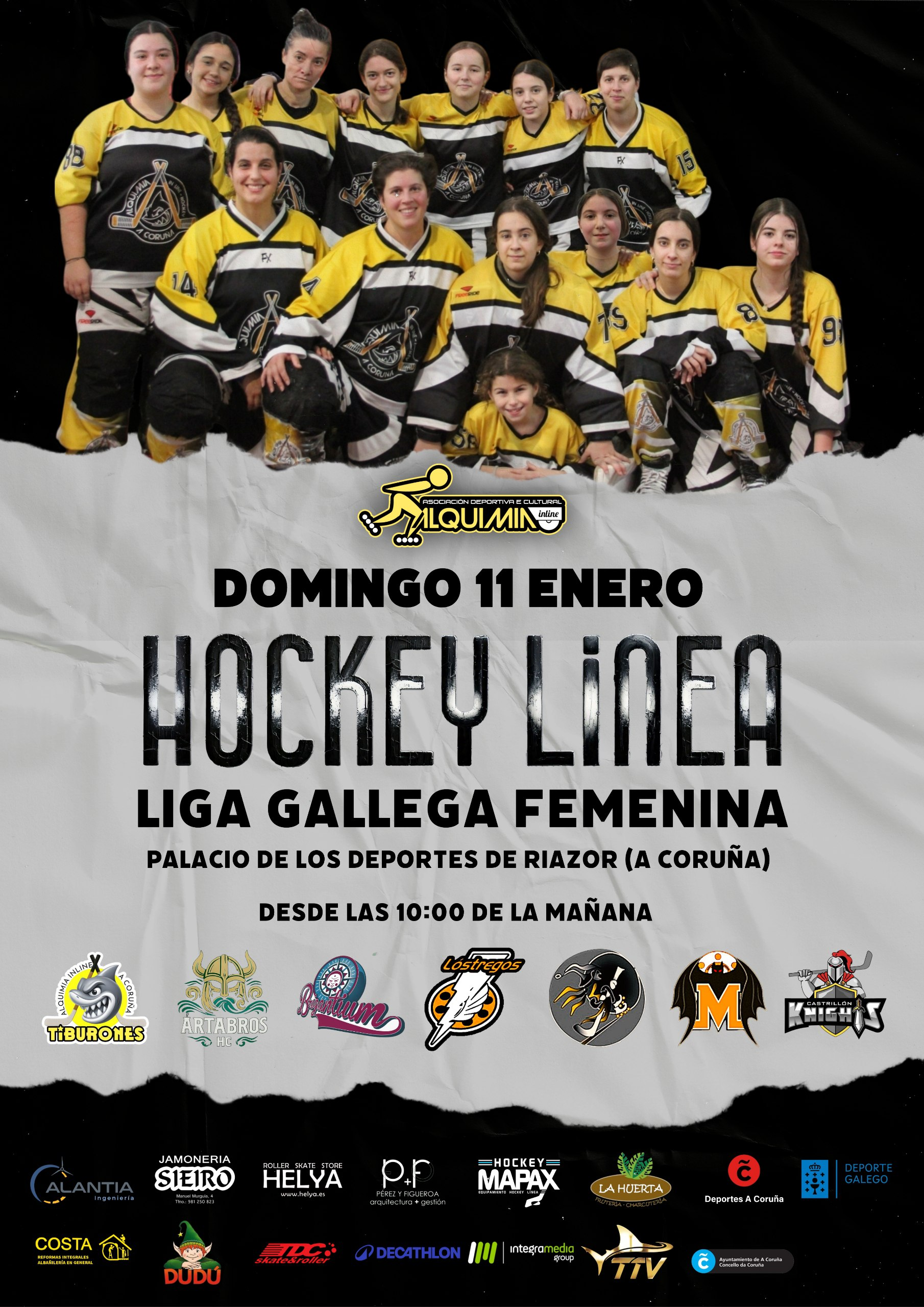 El sábado, el turno será para el equipo Sénior Masculino, que se desplazará al Pabellón de Monte Alto (A Coruña) para inaugurar el año competitivo. A las 13:45h disputarán el primer encuentro de la jornada contra CHLS Guardians, y a las 16:15h llegará el segundo partido que los enfrentará con Morcegos HL, en una sede perfecta para sacudirse el turrón, reajustar automatismos y empezar el año con buen ritmo de patín.