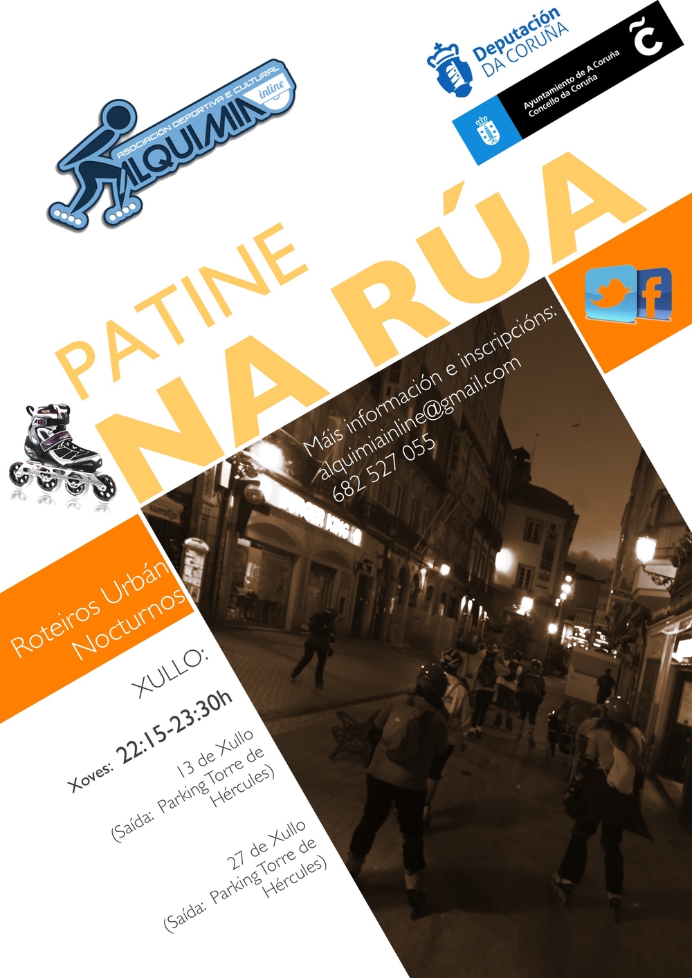 O xoves 13 e 27 de xullo, as 22:15h, Alquimia Inline organizará os habituais roteiros urbáns nocturnos sobre patíns tan característicos destas datas.