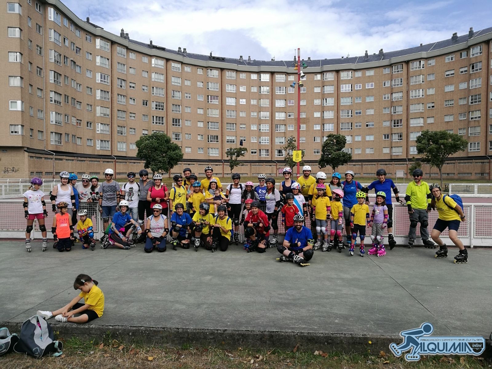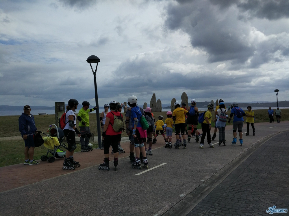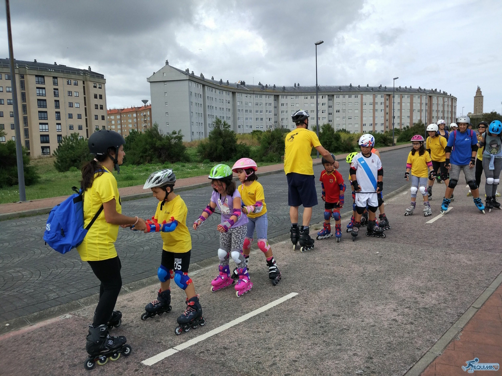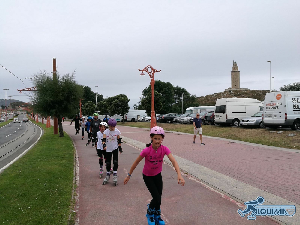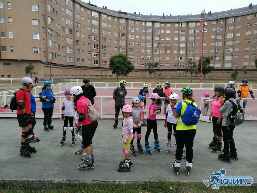 Recién estrenadas en el Programa Coruña en Forma (Concello de A Coruña), las rutas sobre patines están teniendo una muy buena acogida, y el bullicio pre-ruta, en la Pista de Adormideras, lo demuestra.