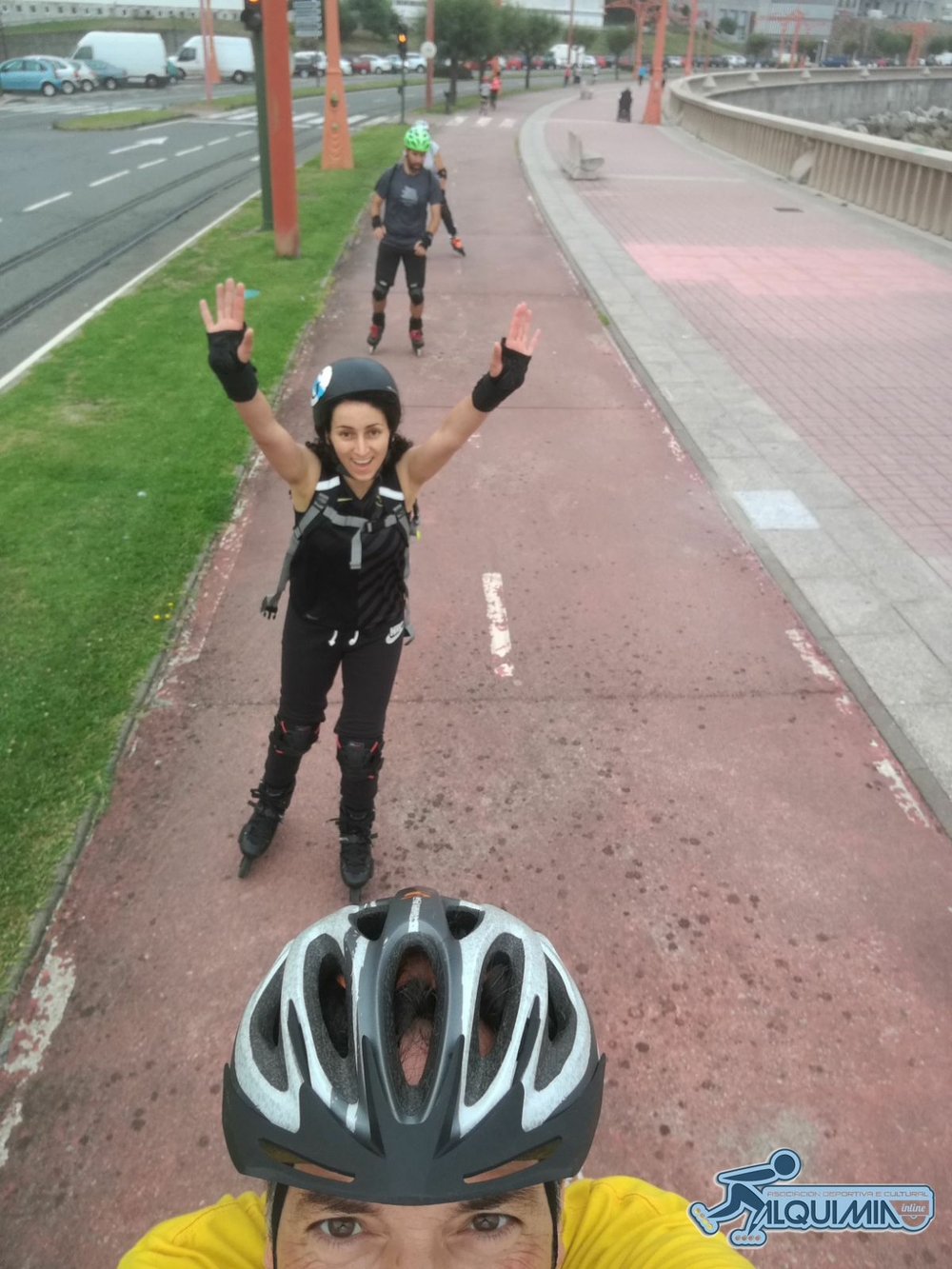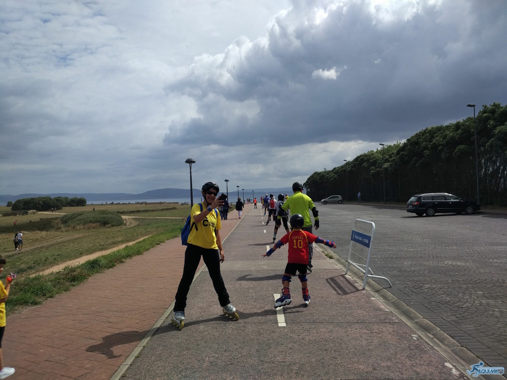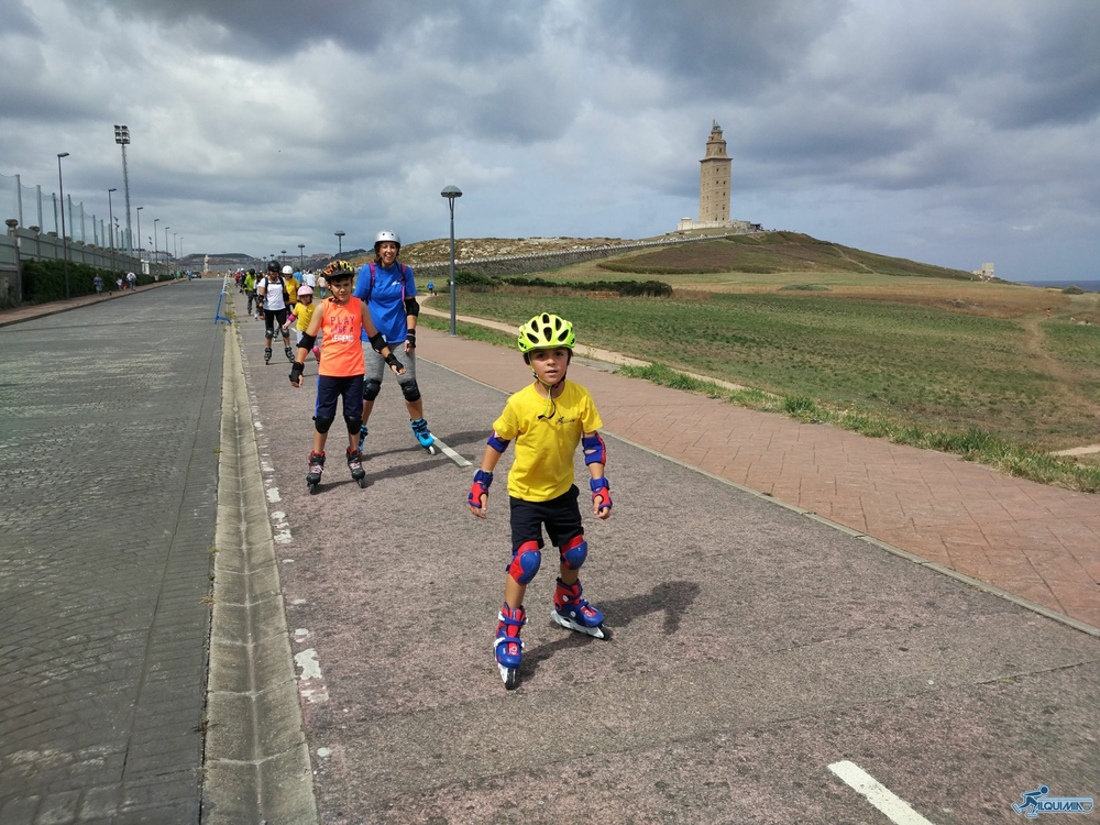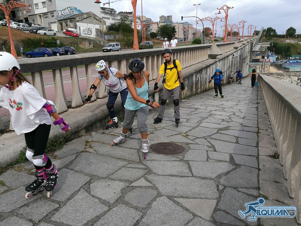 Recién estrenadas en el Programa Coruña en Forma (Concello de A Coruña), las rutas sobre patines están teniendo una muy buena acogida, y el bullicio pre-ruta, en la Pista de Adormideras, lo demuestra.